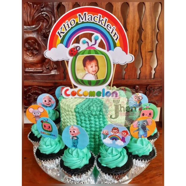 Cocomelon cake designs / decorated cakes. Cocomelon customized cake cupcake topper diecut.